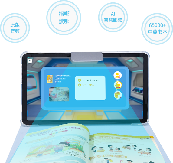 丰富的教科书内容,智能伴随式学习,原版音频、指哪读哪、AI智慧跟读,让孩子开心、家长放心。