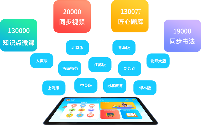 9门科目同步学,涵盖各地主流教材;同步课堂、知识点微课堂,针对性学习;